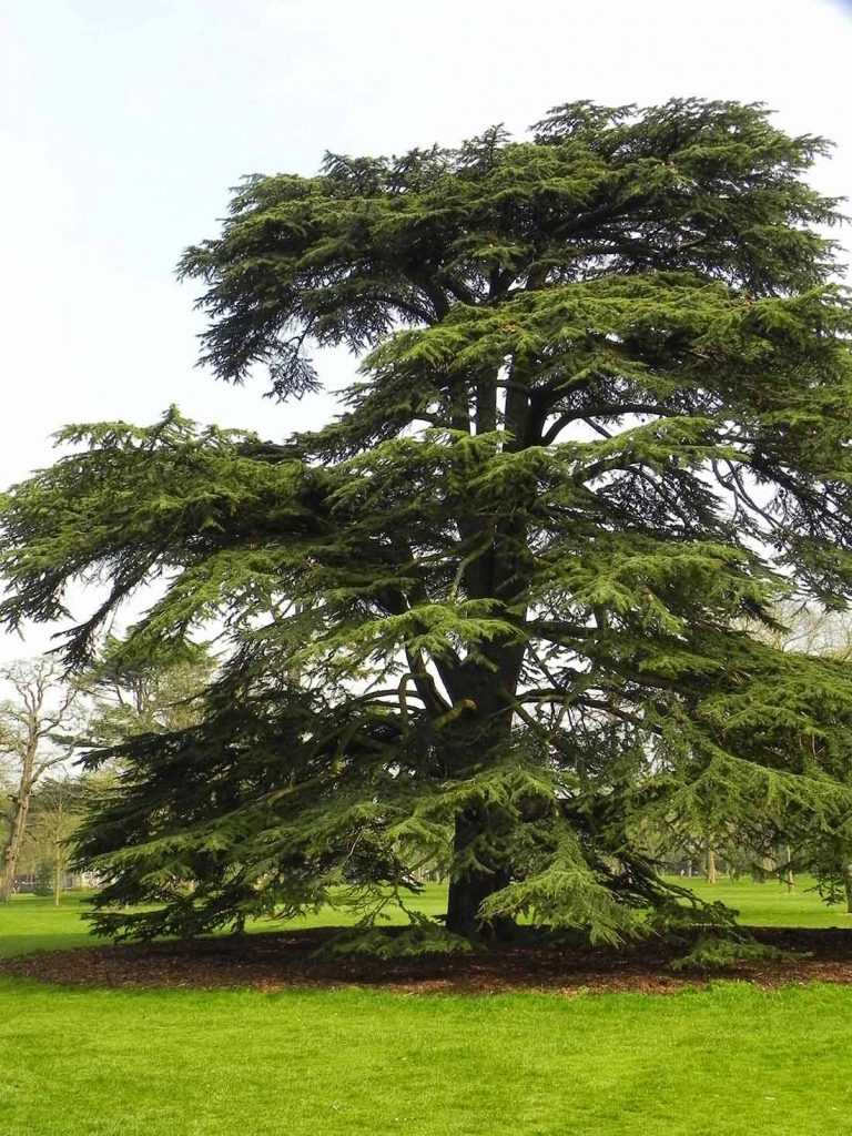 Крона кедра ливанского, типичная для сосновых, обычно имеет конусообразную форму, но иногда может быть и сферической. С возрастом, начиная примерно с 16-17 лет, ветви дерева начинают расти горизонтально, формируя слои. Нижние ветви обычно более крупные и массивные, в то время как верхние становятся короче и тоньше, придавая дереву вид, напоминающий вытянутый гриб.