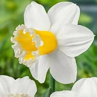 Нарцисс Шуга Диппед (Sugar Dipped) — это изысканный цветок с белоснежными лепестками и крупной жёлтой короной, которая источает лёгкий аромат. Края короны сильно гофрированы и украшены светлыми пятнышками, создавая впечатление, будто они присыпаны сахарной пудрой. Высота короны достигает 35 см, что придаёт цветку особую элегантность. Этот необычный нарцисс станет настоящим украшением вашего сада.